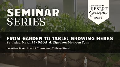 The Carefree Garden Seminar Series returns in 2026, offering fresh ideas and inspiration for gardeners and nature lovers alike. Taking place in January, February, March, and April, each free seminar will spotlight a different topic focused on gardening and plant life unique to the Sonoran Desert. Held in the Town Council Chambers, this popular series is a great opportunity to learn from experts, connect with fellow enthusiasts, and celebrate the diverse desert landscape that makes Carefree so special. Save the dates and join us in growing together in 2026! 🌵